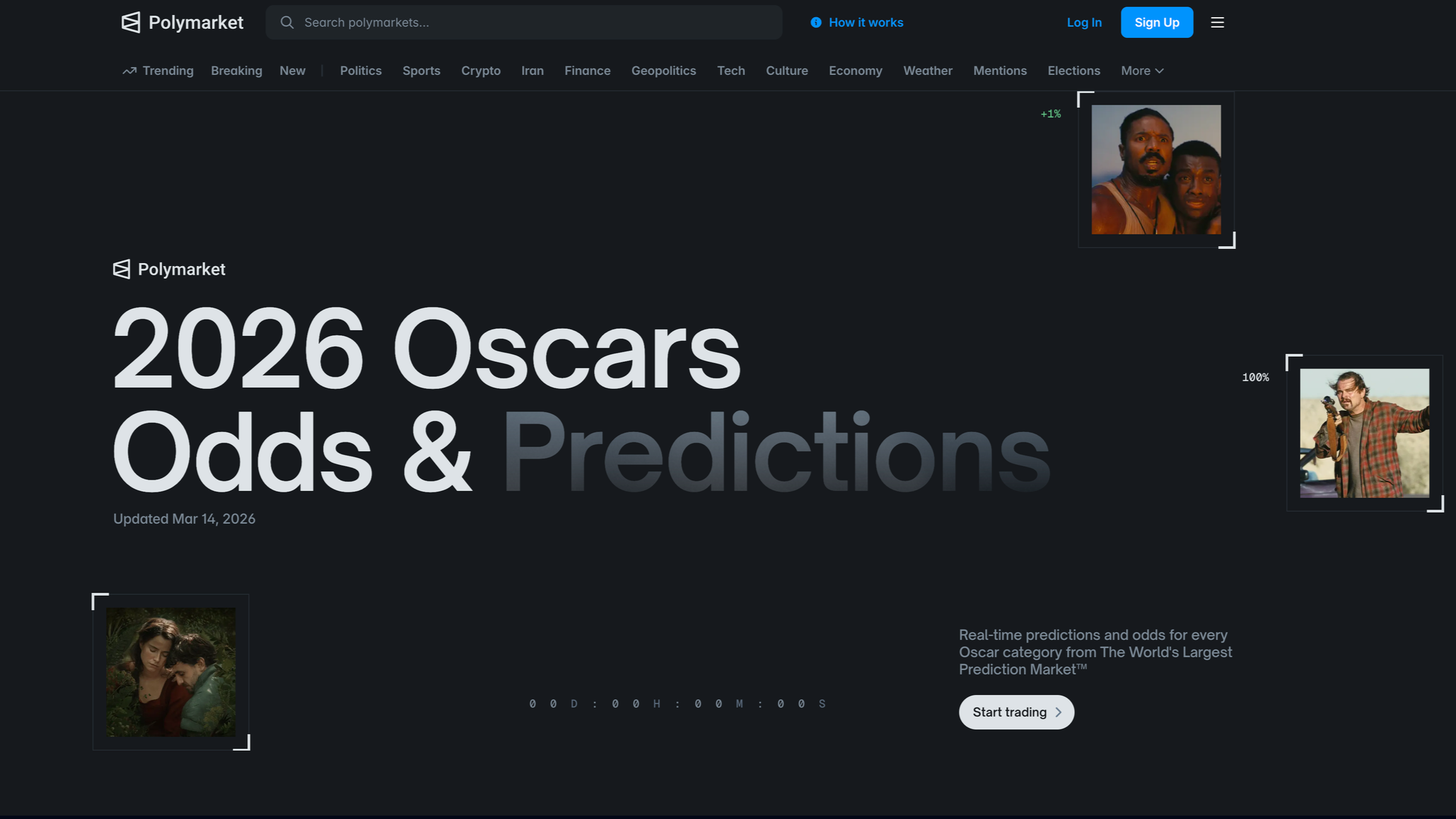 Polymarket 2026, Oscars 2026: Predictions & Real-Time Odds, Polymarket, viewed 12 March 2026, https://polymarket.com/predictions/oscars.